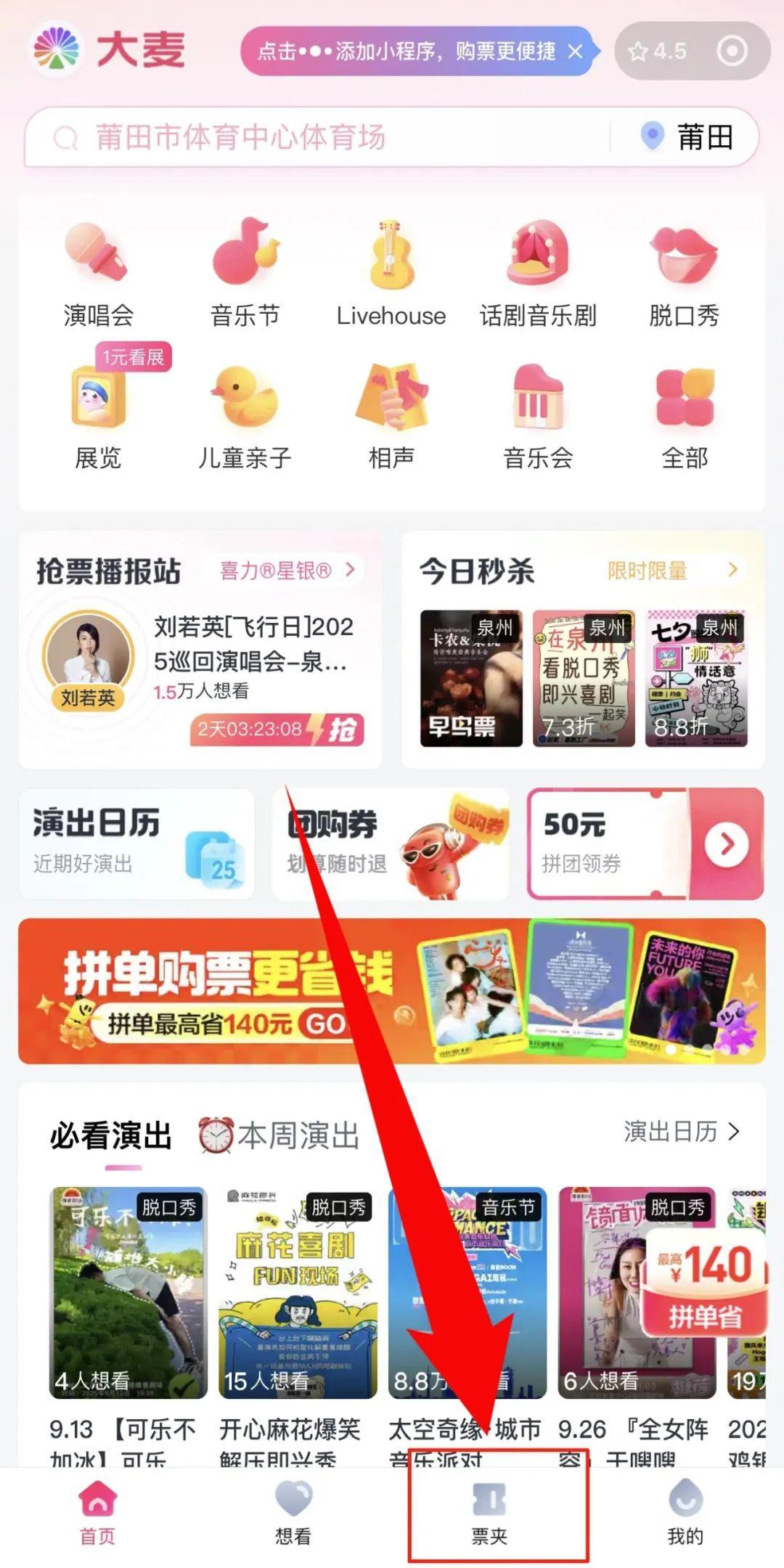 点击下方【票夹】