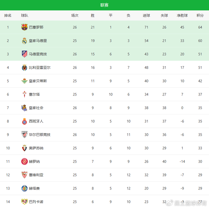 4-1大胜!1-0绝杀!西甲最新积分榜:巴萨甩开皇马,马竞反超黄潜|巴塞罗那|比利亚雷亚尔|皇家奥维耶多|奥维耶多|皇家马德里_新浪体育_新浪新闻